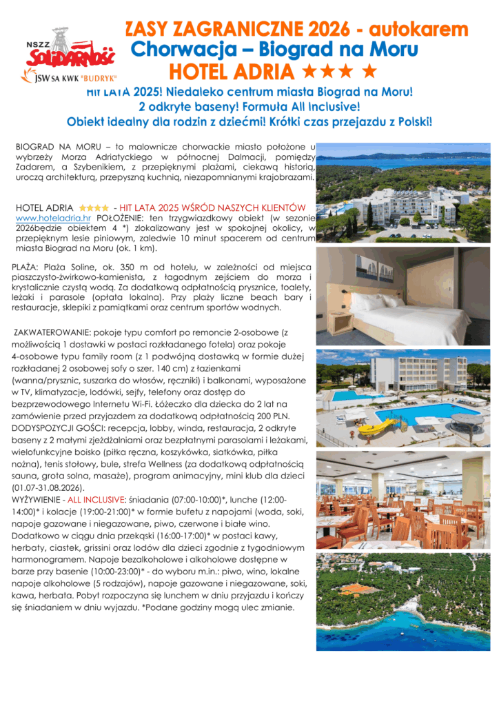 Regulamin rezerwacji wakacji letnich oraz wycieczek 2026
